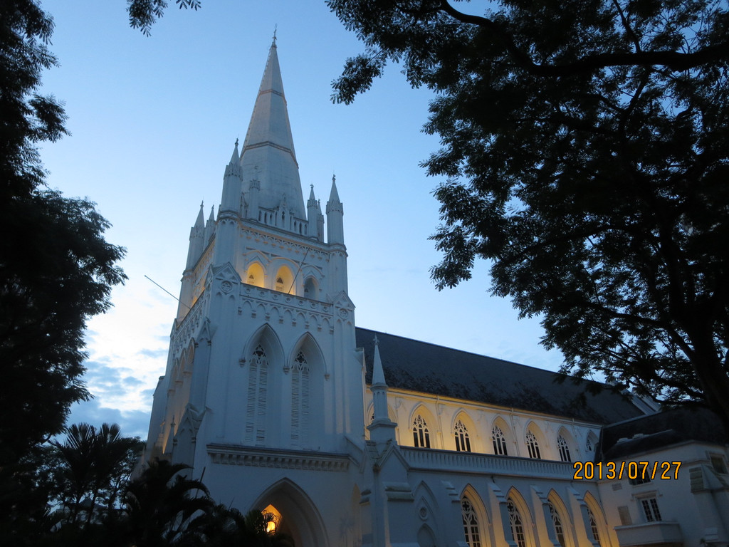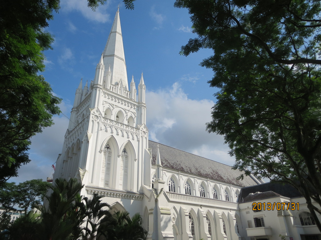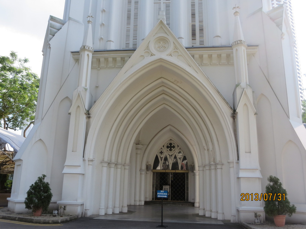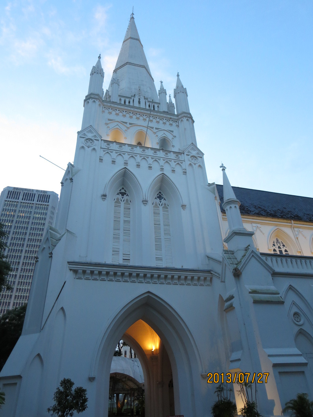 我们住的酒店斜对面,也就是政府大厦地铁站旁边就是著名的圣安德烈教堂(St. Andrew's Cathedral)。一座洁白的歌特式教堂,高高的尖顶直插蓝天,像一位高大而圣洁的神之使者,默默地伫立在喧嚣的市中心,却让每一个见到他的人,心中都会不由自主地油然而生向往和敬畏。