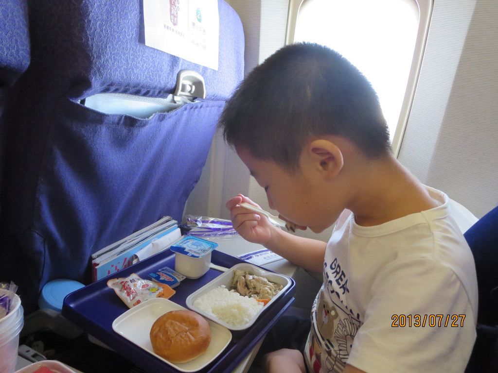 飞机准点起飞了,腾空而起的一霎那,我紧张地看着小家伙的反应。他小人家很淡定地一脸平静,问他耳朵痛不痛,他丢了句“没感觉”给我。