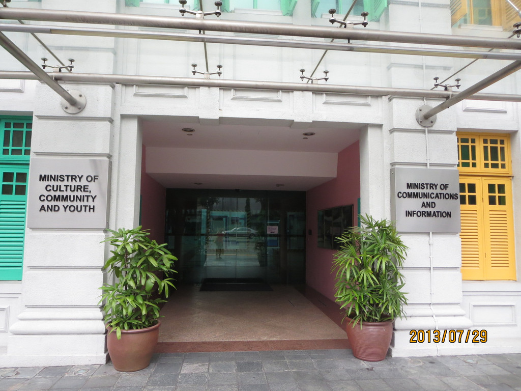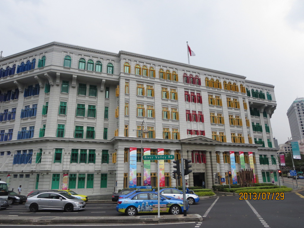 在河的北岸,有一座外观非常引人注目的大楼——MICA building (新闻及艺术部大楼)。大楼前身是 Hill Street 警察局,1998 年这里被列为国家级历史文物,并于 2000 年翻新,此后新闻、通讯及艺术部(Ministry of Information, Communications and the Arts)迁来此地。从正面看,这栋大楼采用的是对称设计,包含着许多充满意大利特色的阳台、拱廊和圆柱,这种极具新古典主义风格的设计,也是上世纪三十年代许多公共建筑的特色。