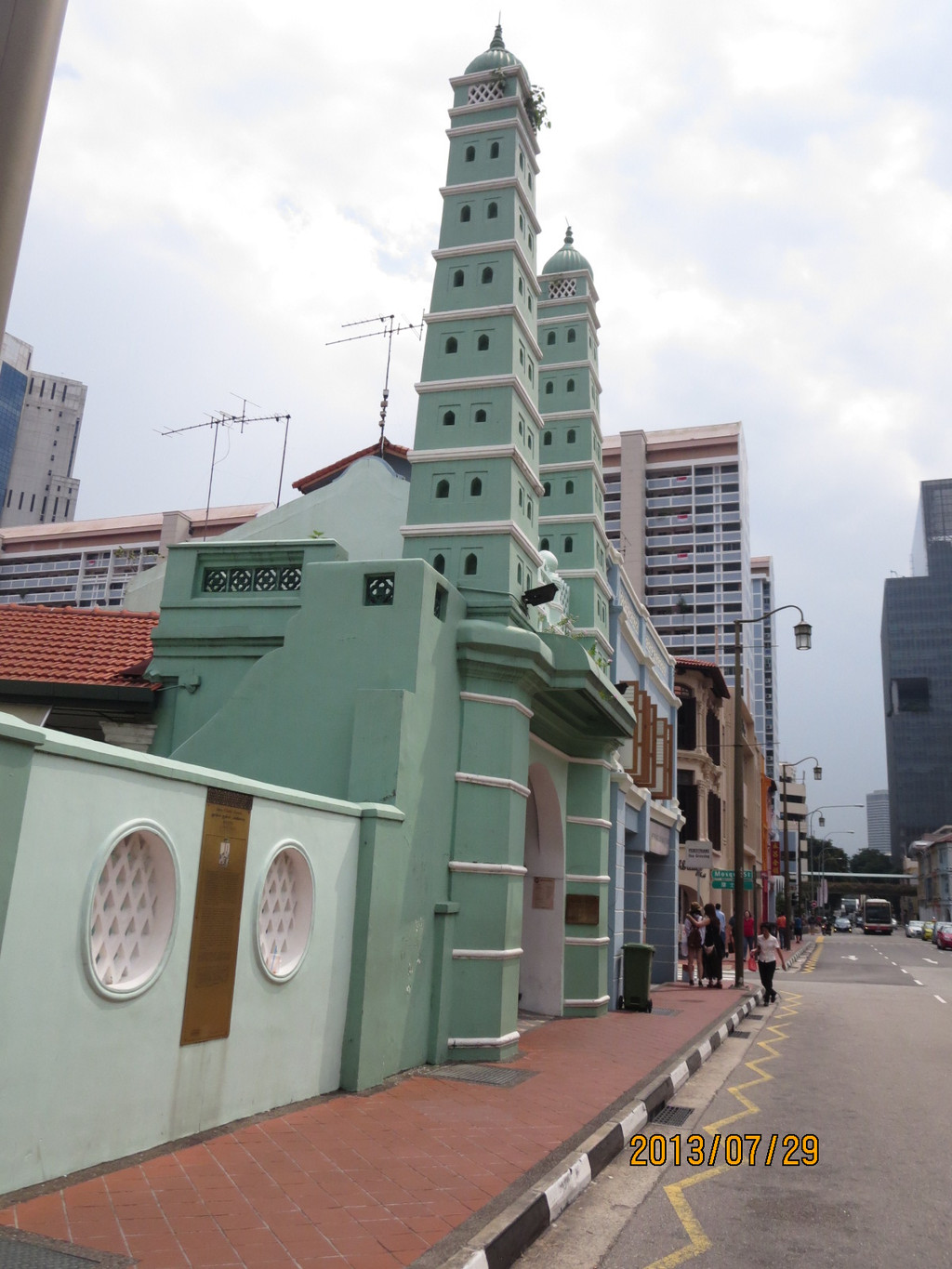 詹美回教堂 (Jamae Mosque) 又名丘利亚回教堂(Masjid Chulia),就在马里安曼兴都庙附近,自 1820 年代以来一直是牛车水的一处著名地标。