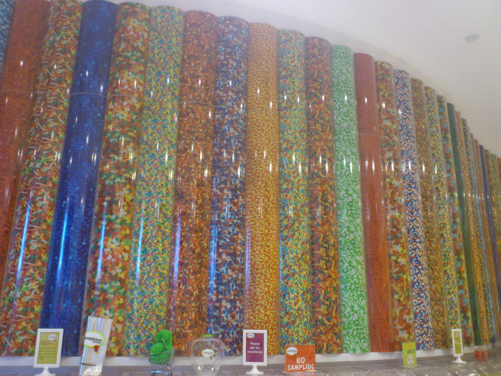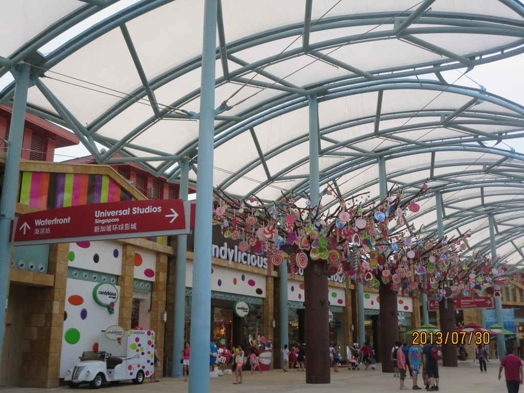 在环球影城地标的正对面,有一家全亚洲最大的糖果店Candylicious,店门口的那几棵悬挂着无数巨大糖果模型的糖果树很是吸引眼球。店里有一整排墙上都是各种五彩缤纷的糖果,足以让人少女心泛滥。里面的糖果和巧克力品种很全,绝对是小朋友来了就不想走的地方。