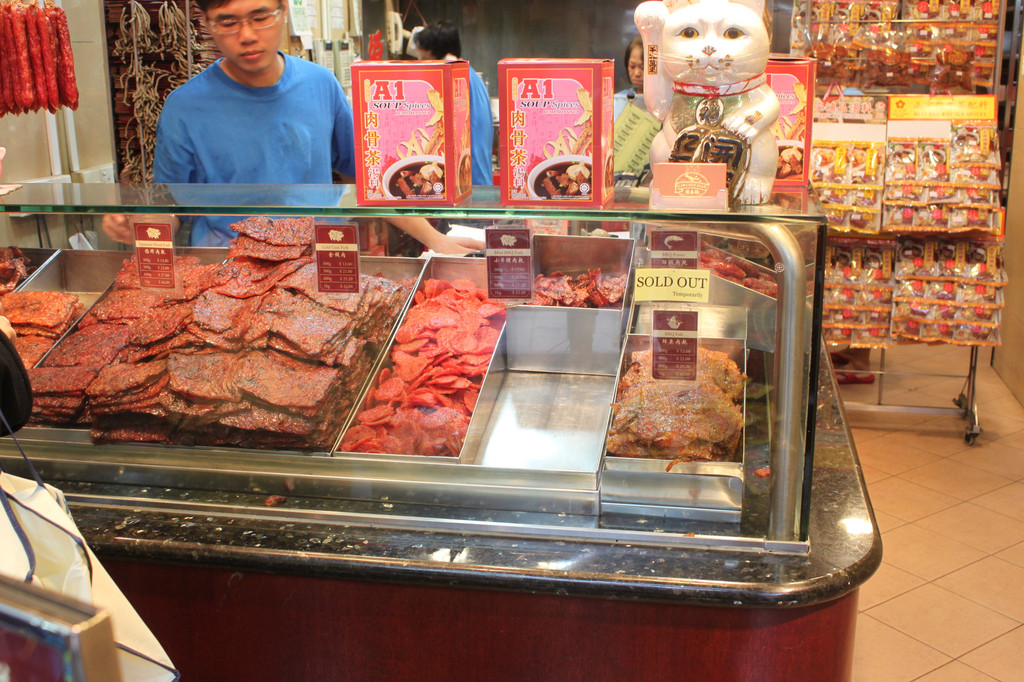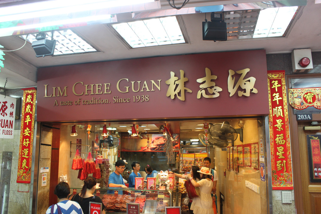 牛车水有一家老字号「林志源」肉干,从1938年开始营业到现在,全球只有三间分店,其中牛车水总店是最受欢迎的。别看店面不大,每逢过节的时候,排队来买的人特别多,甚至有可能要排两个小时哦。