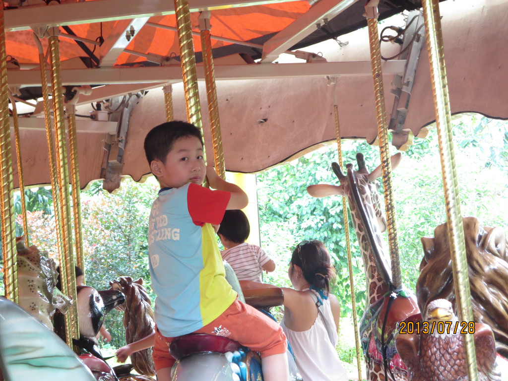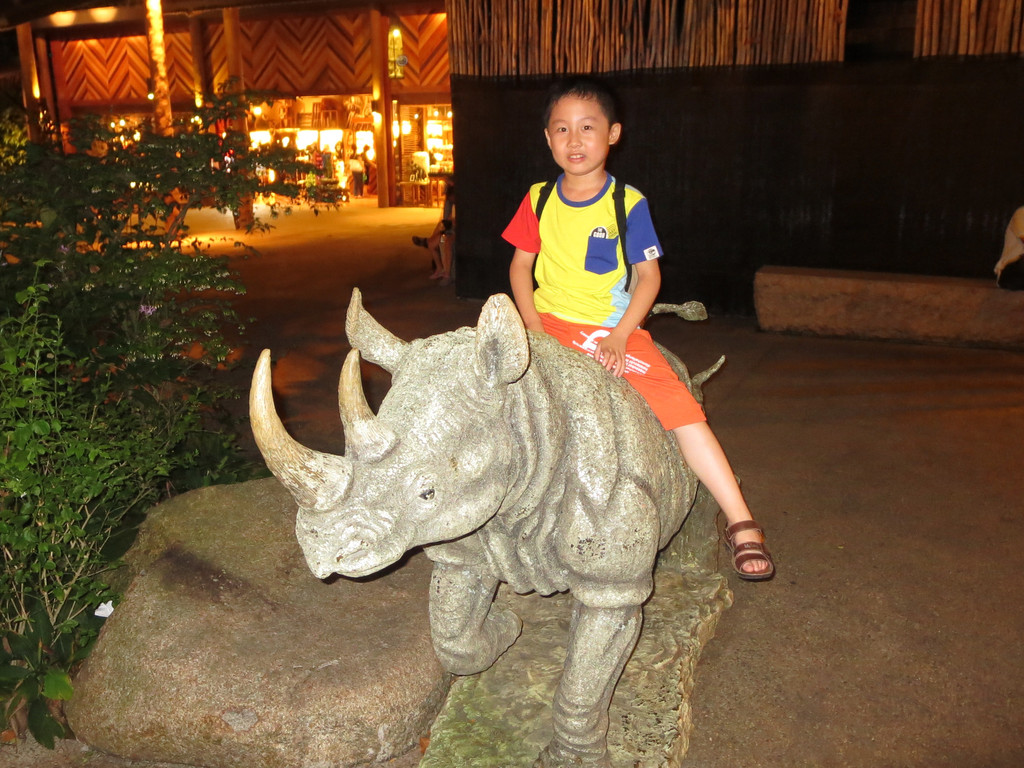 我们选择了坐游览车行进,一路上就看见有的动物懒懒地躺着,似乎已进入梦乡;也有些猛兽越晚越精神,两眼放光,似乎还准备来顿夜宵。游览车也是全开放式的,周围无遮无拦,行进路上,一不留神,还会有不知什么动物从暗处窜出来,又迅速淹没在夜色中。小家伙可能是被吓着了,说什么也不敢去走步道了,动物表演也没看成,就草草收兵出园了。