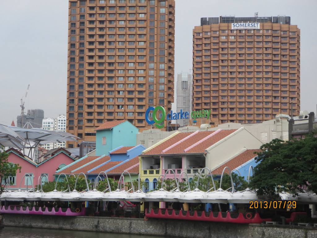 新加坡河两岸是这个城市最繁荣的地区之一,拔地而起的高楼大厦总让人忘不了这是座现代化都市。克拉码头就位于新加坡河畔,这里曾经是用来卸货的一个小码头,经过开发后已然今非昔比,成为新加坡市区一个集购物、饮食、娱乐于一体的悠游天堂。这个码头似乎整天都处于节庆气氛中,街边的酒吧、餐厅让这里的氛围变得十分欢快轻松。在2008年时,码头湖畔建造了高达165米的摩天轮,使得这片区域更加乐不胜收,正是这样一个充满节庆欢快氛围的码头才吸引了众多游客前来游玩。