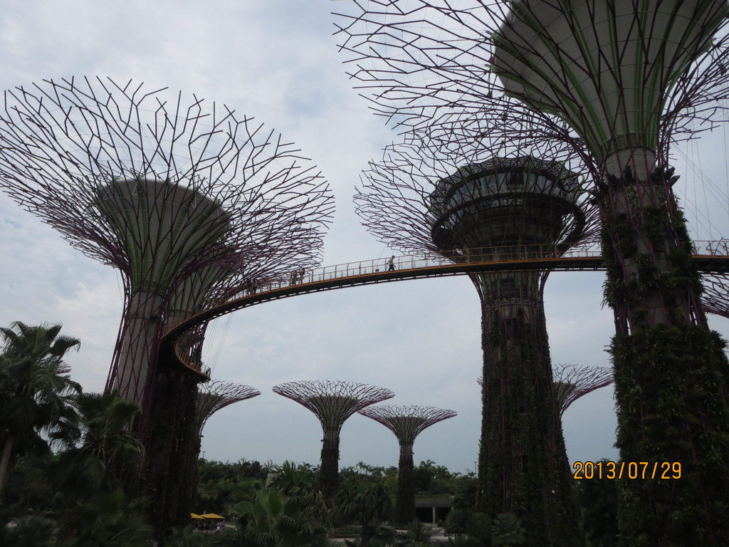 巨大的天空树共有18棵,每棵树的平均高度都有23米以上。树丛全部位于户外,就在金沙酒店的后方,从酒店高处可以俯瞰滨海湾花园的全景。