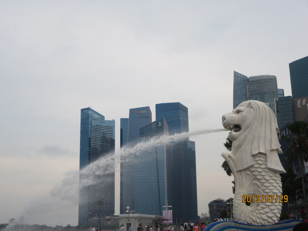 从桥上下来,就拐进了鱼尾狮公园(Merlion Park),这是新加坡面积最小的公园,却也是游人必到打卡之处。鱼尾狮是一种虚构的鱼身狮头的动物,它在1964年由时任Van Kleef水族馆馆长的Fraser Brunner先生所设计。两年后被新加坡旅游局采用作为旅游形象标志,一直沿用到1997年。在这期间,鱼尾狮已成为新加坡的形象代表。