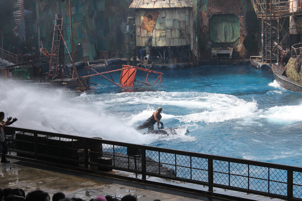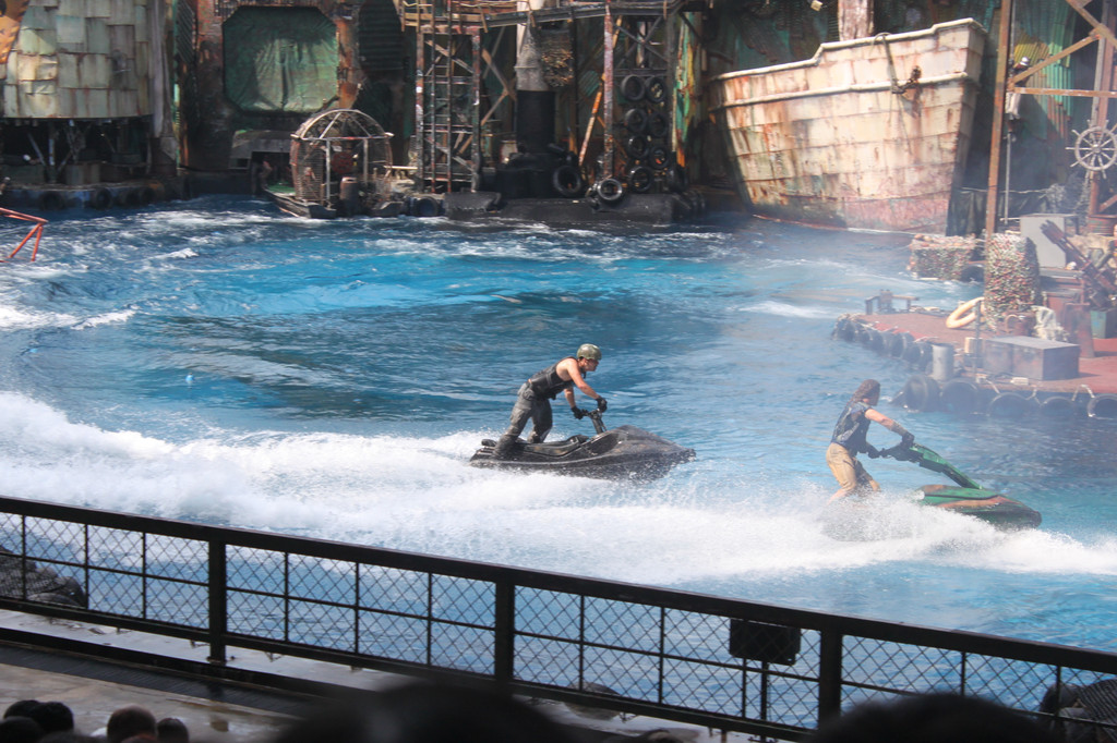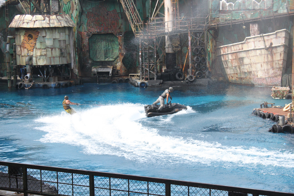 根据《未来水世界》的经典卖座电影而演绎的无与伦比的水上表演盛宴,让观众观赏到唯有环球影城才敢于呈献的高超特技。在20分钟的演出里,观众会欣赏到30多个惊险的特技表演。在熊熊火焰和冲天水柱相互烘托下的爆炸演出和惊险特技,必定让观众拍案叫绝。