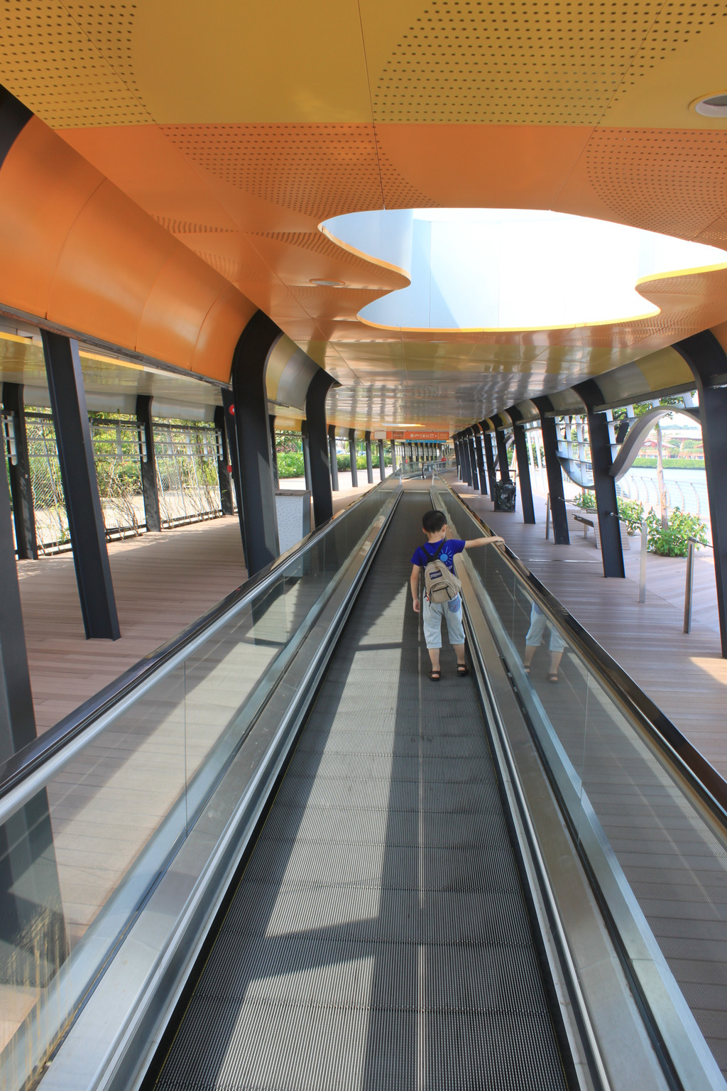 从新加坡本岛前往圣淘沙岛非常的方便快捷,有多条线路可供选择,分别是缆车、轮渡、巴士、捷运(地铁)、出租车和步行,可自由选择入岛方式。我们选择了最环保的步行方式,从怡丰城一楼门口的沿海步道走上岛。步道全程大约10分钟左右,可以一边看风景,一边享受海风习习,步道上设有顶棚,完全不用担心日晒雨淋。