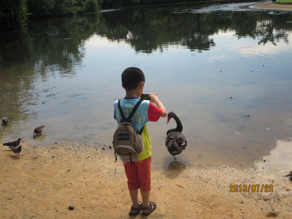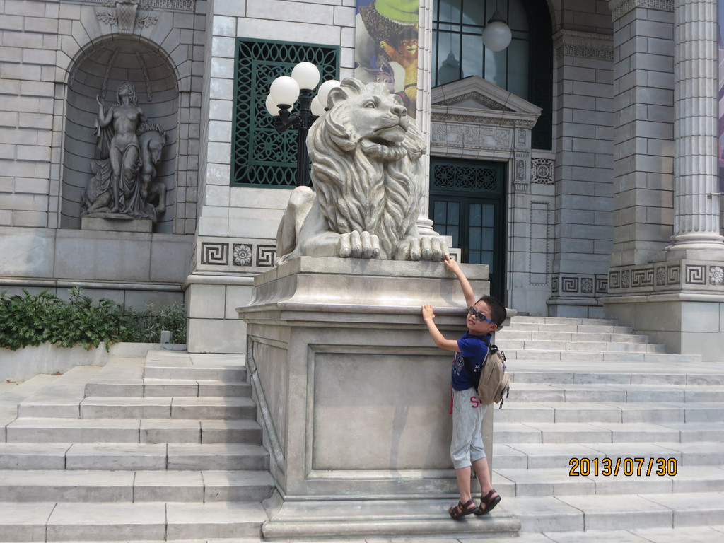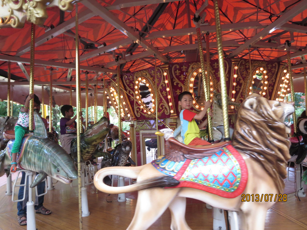 园门口设有形象的动物雕塑,小家伙也就敢骑在雕塑身上耍耍威风: