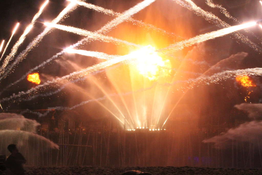夜幕降临后,圣淘沙的沙滩上还会上演一场大型音乐喷泉表演——海之颂。不过这可不光光是个配上了音乐的喷泉那么简单,“海之颂”是世界上首个以大海为舞台的永久性海上夜间汇演节目,以歌乐与戏剧形式,结合烟火、水射等特效,利用最先进的激光技术、影像、三维立体动画等呈现出绝美的场面,把观众引入如真如幻的神奇世界。
