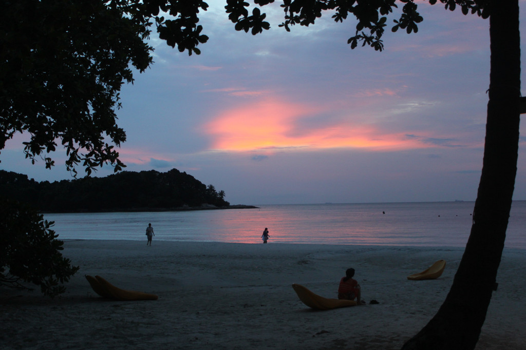 悦榕庄 (Banyan Tree Bintan)、悦椿 (Angsana Bintan)、Club Med都是岛上备受欢迎的度假酒店。我们入住的民丹岛娜湾度假酒店(Nirwana Resort Hotel Bintan)虽比不上这几家的豪华,但一样拥有海景和沙滩。夜色渐深的沙滩上,晚霞仍恋恋不舍地挂在天边,有一种别样的静谧之美。