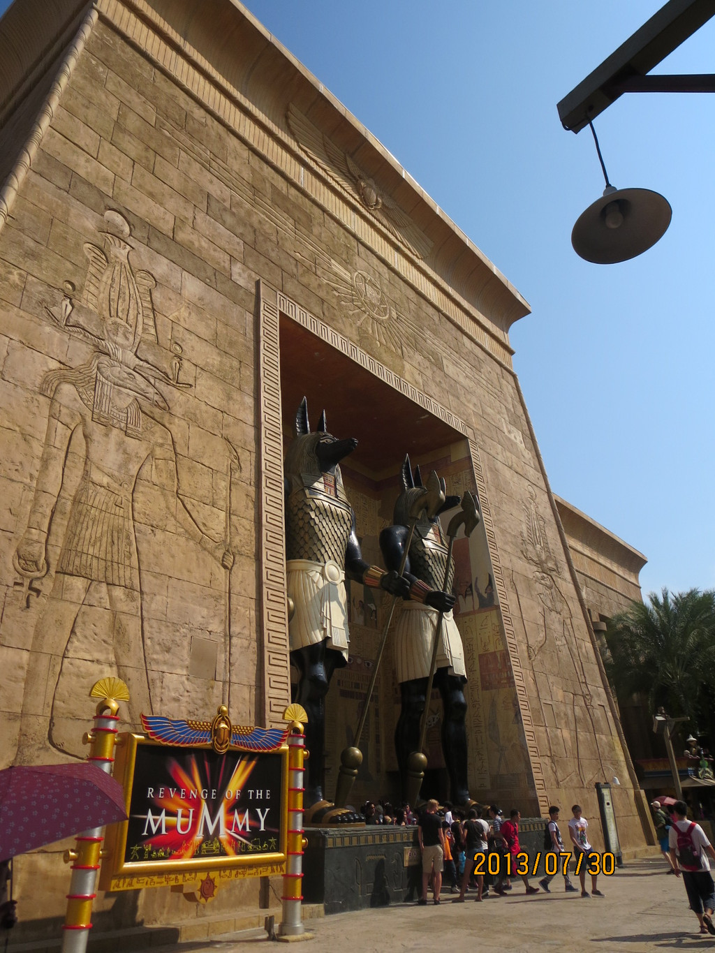 无视时间流逝而高挺屹立的古老神殿,把我们带回上世纪三十年代的埃及,重现古埃及黄金时代的探险辉煌。那是法老陵墓被发掘、恐怖魔咒遭释放的年代。人们追随着英勇善战、胆大心细的考古学家的步迹,在浩瀚沙漠中凭借冷静与智慧破解神殿之谜。无论是在地中海风味馆解渴充饥,到卡特宝库寻找古埃及文物仿制品,或是亲身经历木乃伊复仇记室内过山车的惊险刺激,都是一段难忘的勇者之旅。