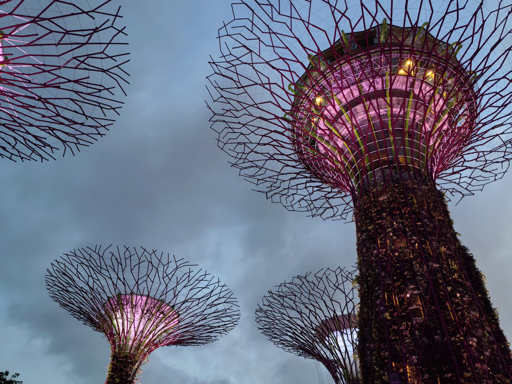 滨海湾公园是一片非常大的绿化公园,里面主要的观赏景点有flower dome和clouds forest,以及sky garden。三个景点都要收费,我们只去了sky garden(人工巨树!),恐高人群谨慎购票,门票有两种,推荐室外连廊的,乘坐电梯上去就可以观赏四面八方的新加坡城市景观, 这里晚上有灯光秀,躺在地上听着交响乐,伴随千变万化的点点星光,仿佛能置身宇宙进行遐想。