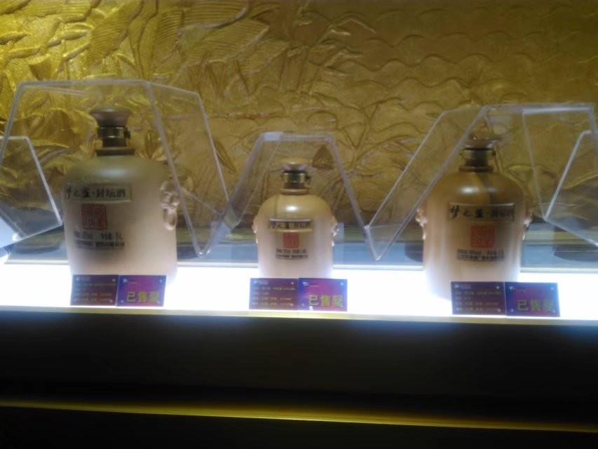 这里面的每坛酒都价值120万一坛,据工作人员介绍最前面的两坛是京东刘强东购买后封存在这里的,里面还有一些其它明星购买签名封存在这里的。