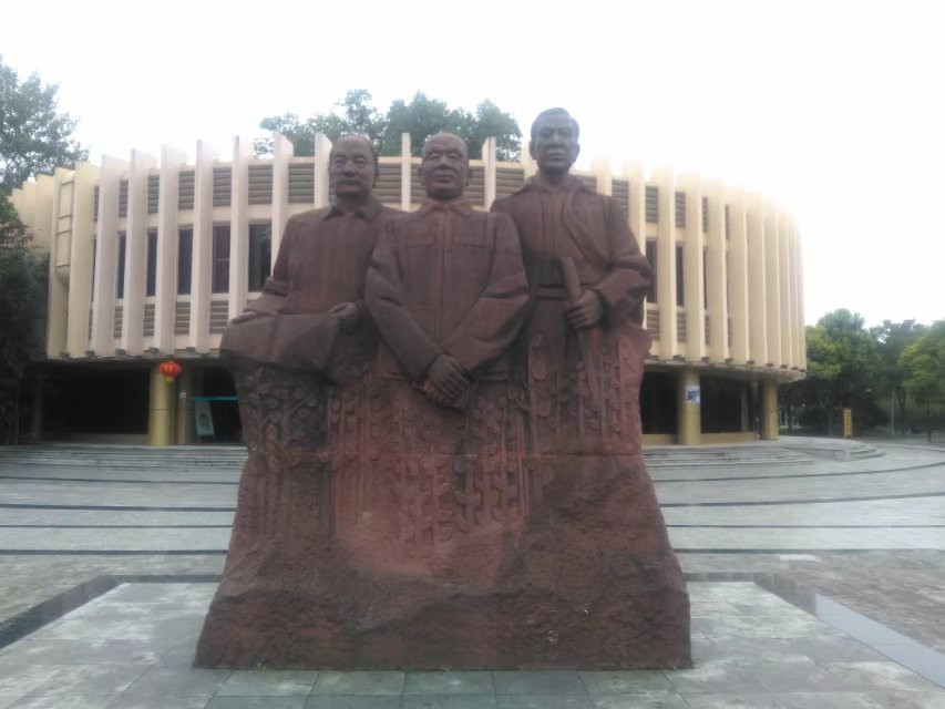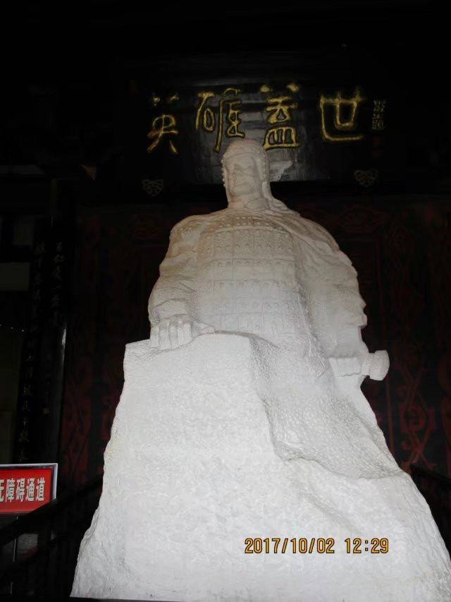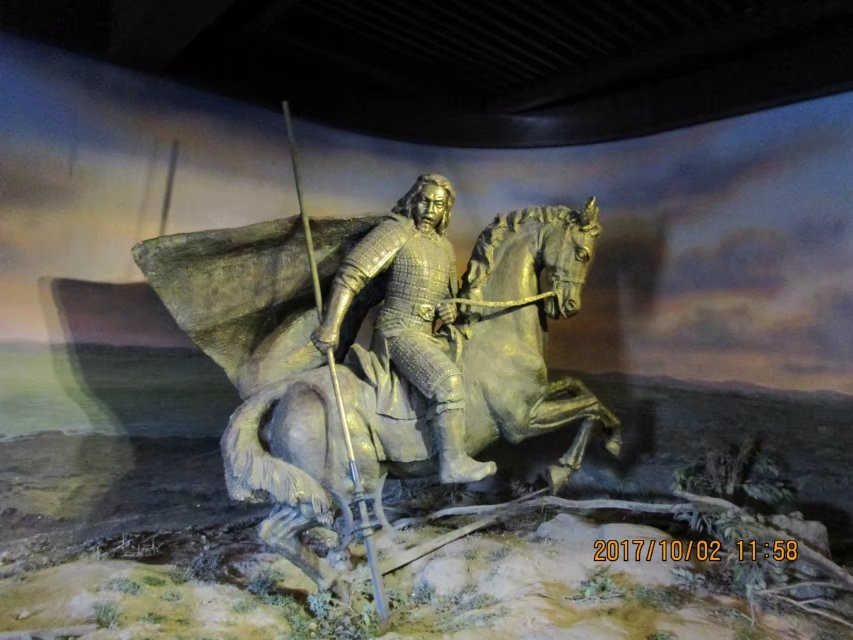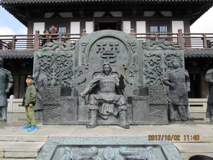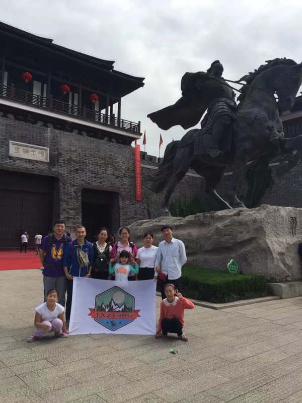 项王故里大门前来张大合影,楚霸王骑马的雕像英姿飒爽。