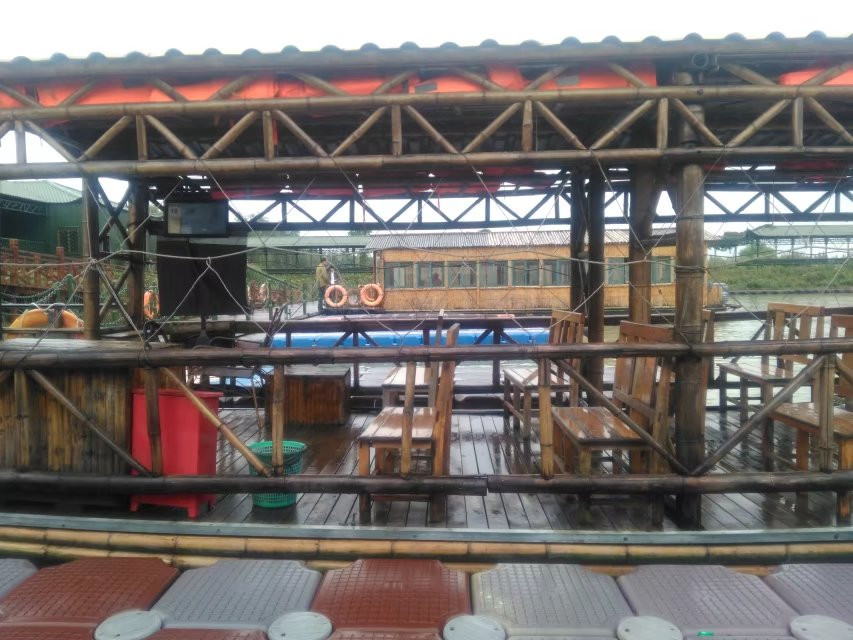 参观完鱼族馆洪泽湖陆上景点基本上就接近尾声了,沿途还会看到万亩荷塘,现在不是荷花盛开的季节,如果夏天来一定非常的壮观,所以说洪泽湖四季都是景,出了景区大门天色渐暗,来到洪泽湖旁边的古徐水街,里面有很多特色的餐馆,晚餐选择了农家草锅,人比较多选了双口锅一锅洪泽湖杂鱼锅,一锅洪泽湖土鸡锅,真的是杂鱼味鲜,土鸡肉香非常的美味,关键是价格还很实惠一起才三百多元
