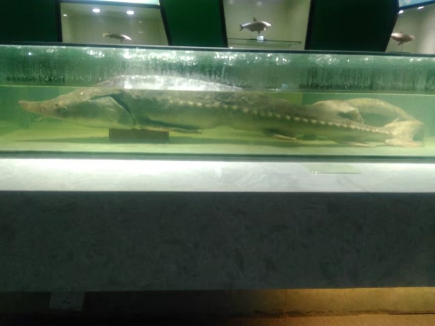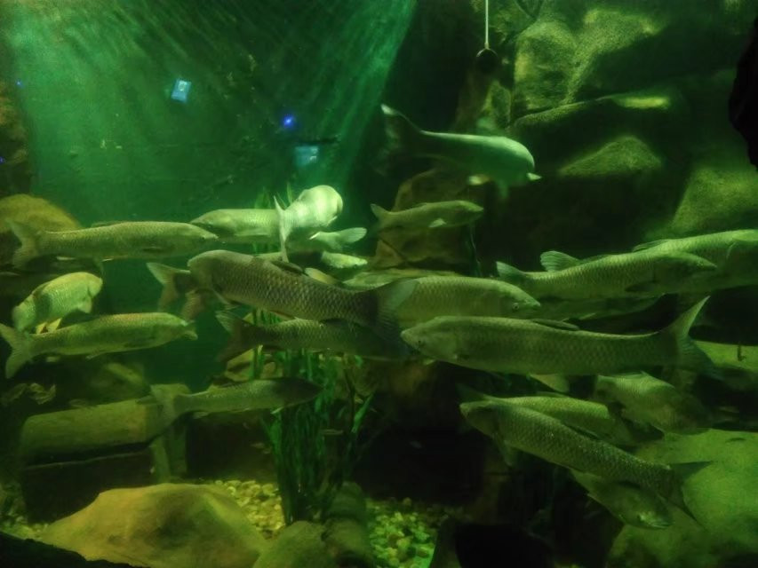 乘着游船一路碧波荡漾、微风徐徐,欣赏洪泽湖两岸风光美不胜收,历经八小时的疲惫一下子烟消云散。游船结束直接来到小火车的乘车点,乘车小火车游览洪泽湖陆上景点。洪泽湖陆上也有很多景点,有孔雀园、牡丹园、玫瑰园、水杉林、婚纱摄影基地、儿童乐园和鱼族馆,因为天气下雨的原因,中途的景点就没有下车游览了,直接到做到鱼族馆参观了,鱼族馆分为二层,一层展览了洪泽湖里的各种鱼类,二层展览的是各类海洋鱼类和洪泽湖鱼类标本非常值得一看,鱼族馆的造型设计的也非常别致,就是一条大鱼的造型。