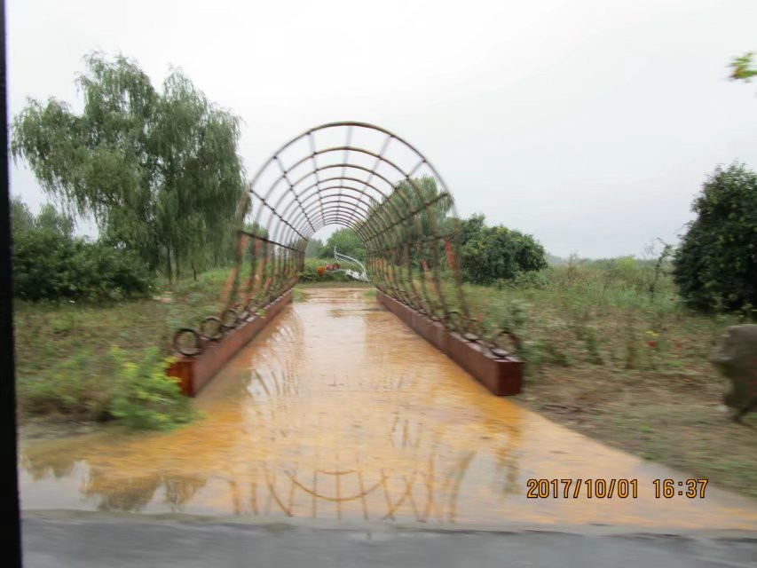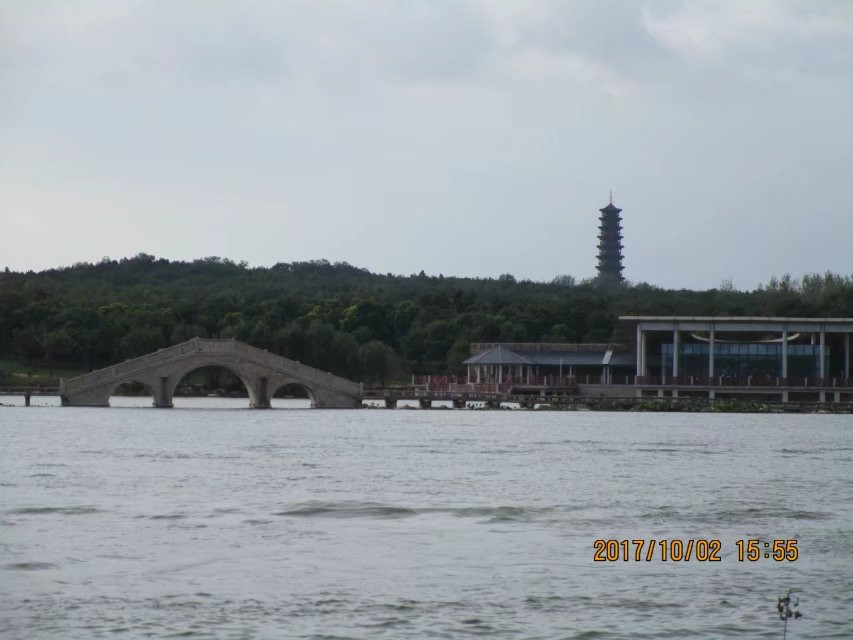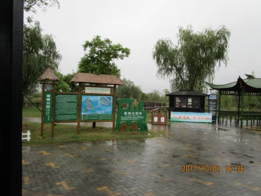 国庆第一天10.1早晨下着小雨,7:00准备从家出发,因为怕第一天出行高速堵车,所以提前一点出发,前半程还算顺利,上了新扬高速开始堵车了,一路上车子就像蜗牛一样缓慢前行,走到盱眙段感觉实在是不能在从高速走了,果断决定从盱眙出口下高速从国道走,事实证明这个决定是正确的,历经8个小时间终于在下午3点钟赶到了泗洪洪泽湖湿地公园,到了景区门口有游完的游客陆陆续续往外走,也有和我们一样刚到的游客往里进。因为下雨的原因天气阴沉,游客不是很多,这也是我们所期待的,提前在携程网上订的游船—小火车—鱼族馆的联票比现场买便宜不少,女儿超过1米2了需要买儿童票,跟工作人员讲我们从南京历时8个小时才赶到这里,结果工作人员微微一笑放我们进去了,给工作人员的热情报务点个赞。