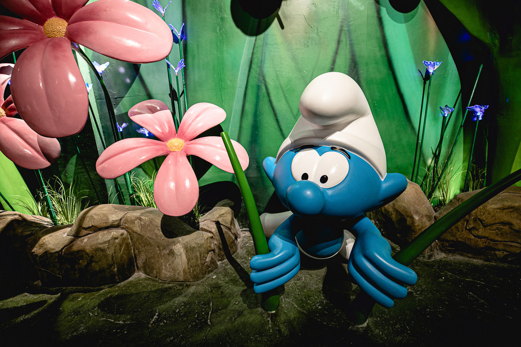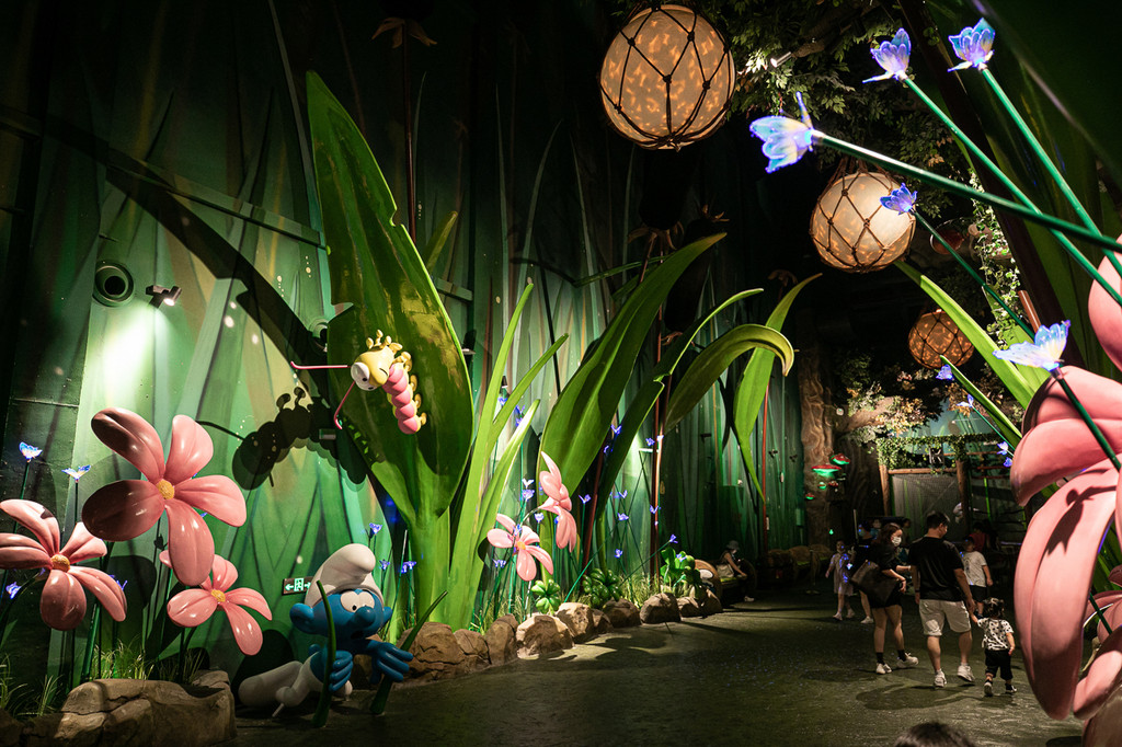 进入这里就是来到了真正的蓝精灵家园,彩色的瀑布、可爱的蘑菇灯、巨大的花朵小草,一切都显得那么梦幻、神奇。