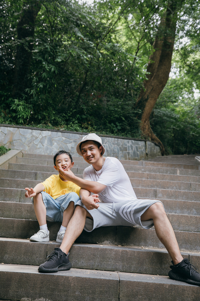 层层石阶,步步阶梯,牵着汉堡的小手行走在山林之中,是非常难得的机会,和小家伙一路嬉笑打闹,偶尔的求抱抱,仿佛回到了汉堡还很小的那个很依赖我的年纪,不知不觉,因为工作忙碌而错失的亲密也就这么一点点回来了。