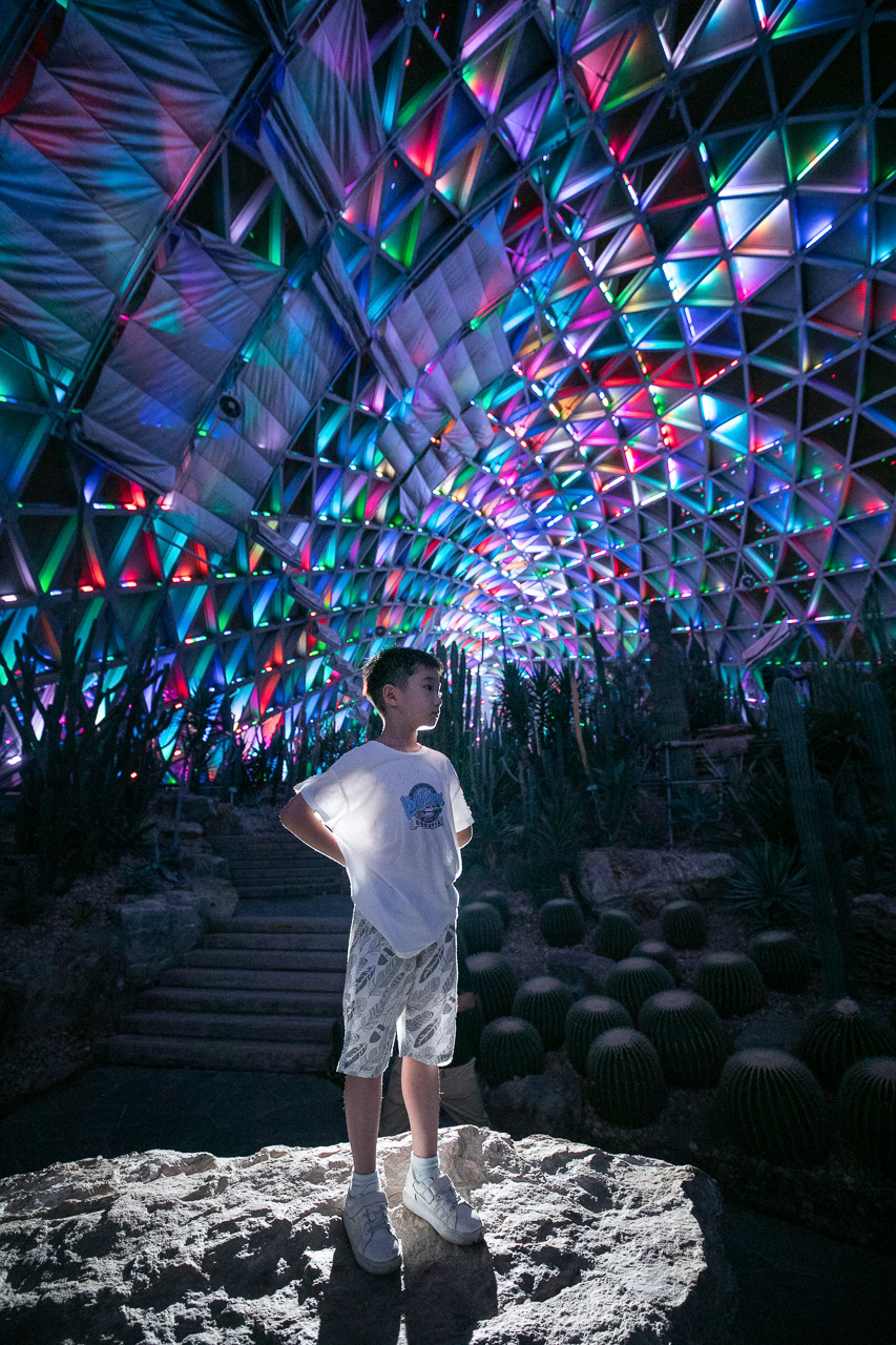不管是馆内还是馆外,都是可以帮小朋友拍出大片感的,不过这个时候就很考验摄影技巧和设备了,如果有意向的话记得提前准备适合夜拍的摄像设备。当然,我这个小模特也很给力,表现棒棒的。