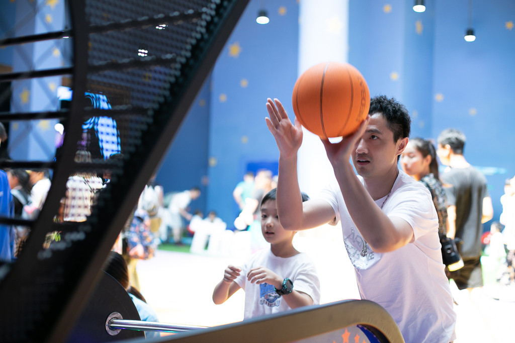 结束黑暗实验室的旅程,终于到了老爸我大显身手的时候了,蓝精灵乐园里的设备都很新,性能良好,玩起来非常顺,投篮机这里就看我如何百发百中了。