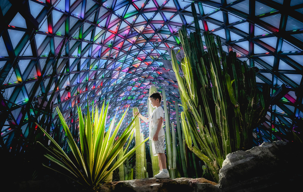 辰山植物园的夜游活动总共有三间温室馆:珍奇植物馆、沙生植物馆、热带花果馆,每一间都是一个梦,是一个充满惊喜的宝库,每一间里都是精彩纷呈,让人目不暇接。不过,辰山植物园的魅力不止于此,珍奇的植物,全世界的珍贵花卉,还有每个季节都独具特色的展览,适合一年四季都来这里游玩,一定会让你觉得物超所值。