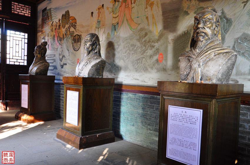 大门里第二进院落,有供奉儒家至圣孔子的先贤殿。先贤殿也称先贤祠,为硬山卷棚式三开间建筑。先圣殿的楹联是:“至圣无域浑天下;盛极有范垂人间”。殿内中央供奉圣先师孔子站像,左右两侧为颜子、子思、曾子、孟子四大贤人线刻图像,西墙为孔子弟子72贤人传略和12先哲画像。