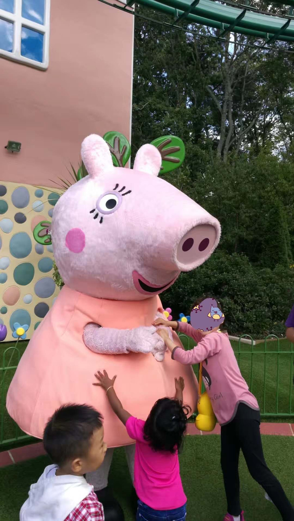 第十三天 一大早我们俩家就出发了,但去的地方又不同,我们按昨天的计划去了Paultons Park就是小猪佩奇主题乐园,同伴要去黑森林国家公园,我们基本是一条路,小猪佩奇主题乐园在这片森林的入口位置,所以我们约了个下午5点集合的时间就又各玩各的了,特别要说一下Paultons Park,这里是世界上第一个小猪佩奇的家,也是失落王国里恐龙的故乡。闺女在这里与粉红猪小妹的约会了一下。Ps: 由于我们到的早前三个游乐项目基本没排队,之后的即便排队时间也不太长,游玩的感觉很好,闺女很开心,门票我们是提前一天在网上Paultons Park的官网买的family tickets,大概比门口买便宜20镑,还是不错的,我还用5镑玩扔包的游戏,给闺女赢了一个皮卡丘
