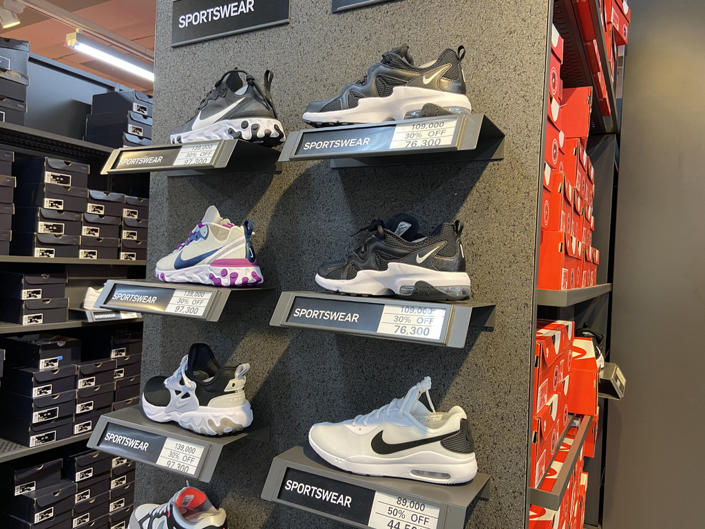 我就通过服务台获得了VIP俱乐部优惠券,在耐克扫货的时候额外获得了5%的折扣。耐克的大部分商品是在30~70%的折扣中,加上额外的折扣,我买了很多运动服、打底裤和运动鞋。