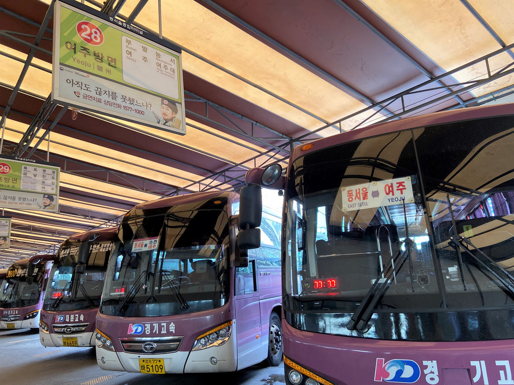 在韩国朋友的带领下,我们先坐地铁2号线到达江边站下车,步行至东首尔车站,在28号候车厅等待,从这里坐巴士出发到达骊州综合巴士站,巴士每趟间隔1小时,到达骊州综合巴士站后再打个车过去就可以,这个方法是最便捷省时间的。此外,亦可乘坐地铁3号线、7号线、9号线到达高速巴士客运站下车,步行至江南高速客运站,乘坐到达骊州的巴士,一小时一趟。如果你想全程坐地铁的话,同样在地铁江南高速客运站换乘两次地铁,1个半小时就可以到达骊州站,出站搭乘的士到达即可。