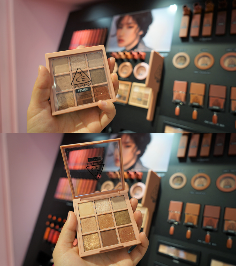 3CE作为韩国彩妆品牌,九色眼影盘一定不能错过,珠光和哑光的配色真的日常百搭,搭配在一起可以演绎出不同的妆容。