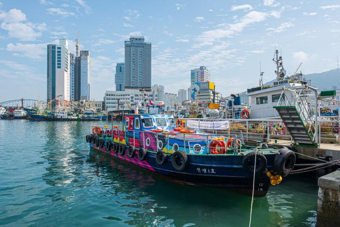 而现在村子处处都画着美丽前卫的壁画,成为了釜山知名的艺术村,可以边听村里古老的故事,边乘坐游船游览港口,感受在碧海蓝天下的惬意旅途。