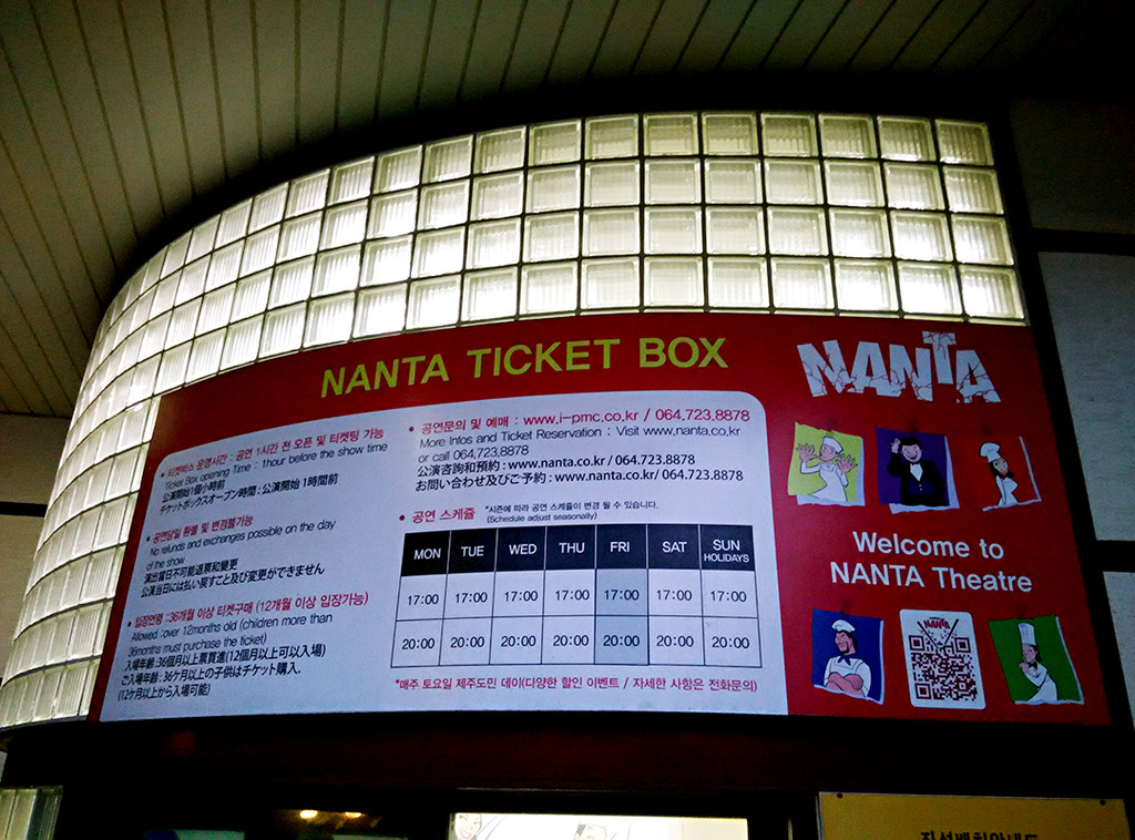 乱打(COOKIN NANTA)意为疯狂打击,是一部以厨房为背景的打击乐喜剧,也是韩国最早并最负盛名的无对白表演之一,其魅力是它超越了语言障碍,即使不懂韩文也能看得懂,也是一场不分国籍、男女老少都能enjoy的韩国本土演出,可以从中感受到韩式幽默及随性敲打的乐趣。