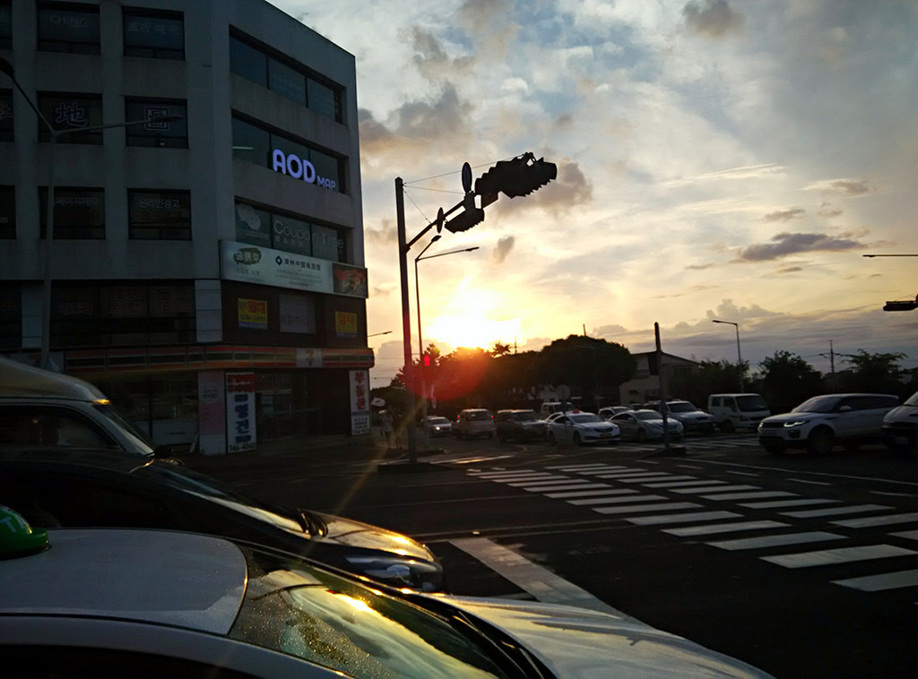 从中文旅游区到翰林公园乘公交移动了58站,从公园回酒店移动了69站,济州人民的战线拉得哈长,还好路上有落日相伴。