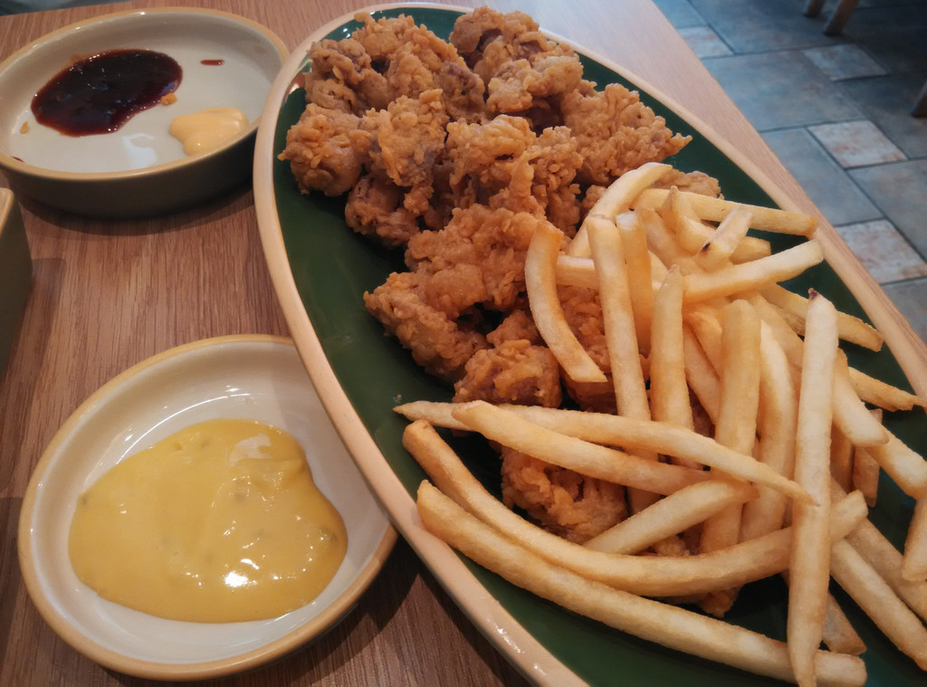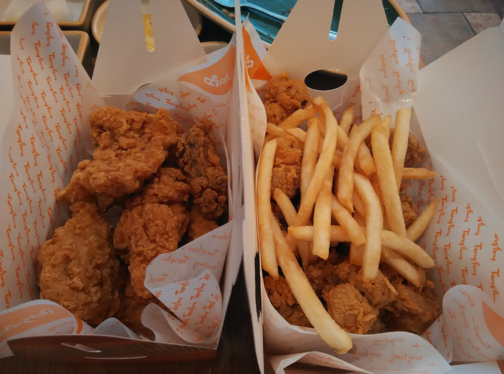 宝健路上找家炸鸡店开吃。欧巴的炸鸡,量还能再大点嘛: