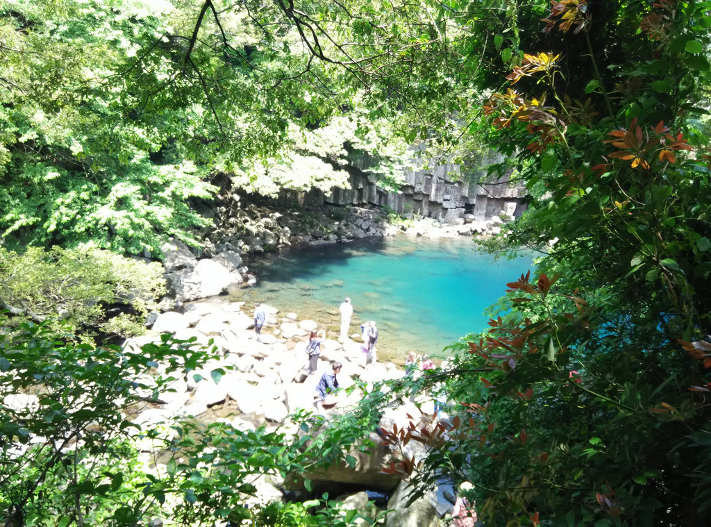 天帝渊瀑布的一汪碧水让我想起了九寨沟,四周丛林密布,游人三三两两,是个神仙似的去处。不得不说韩国人对于环境的保护还是很到位的。