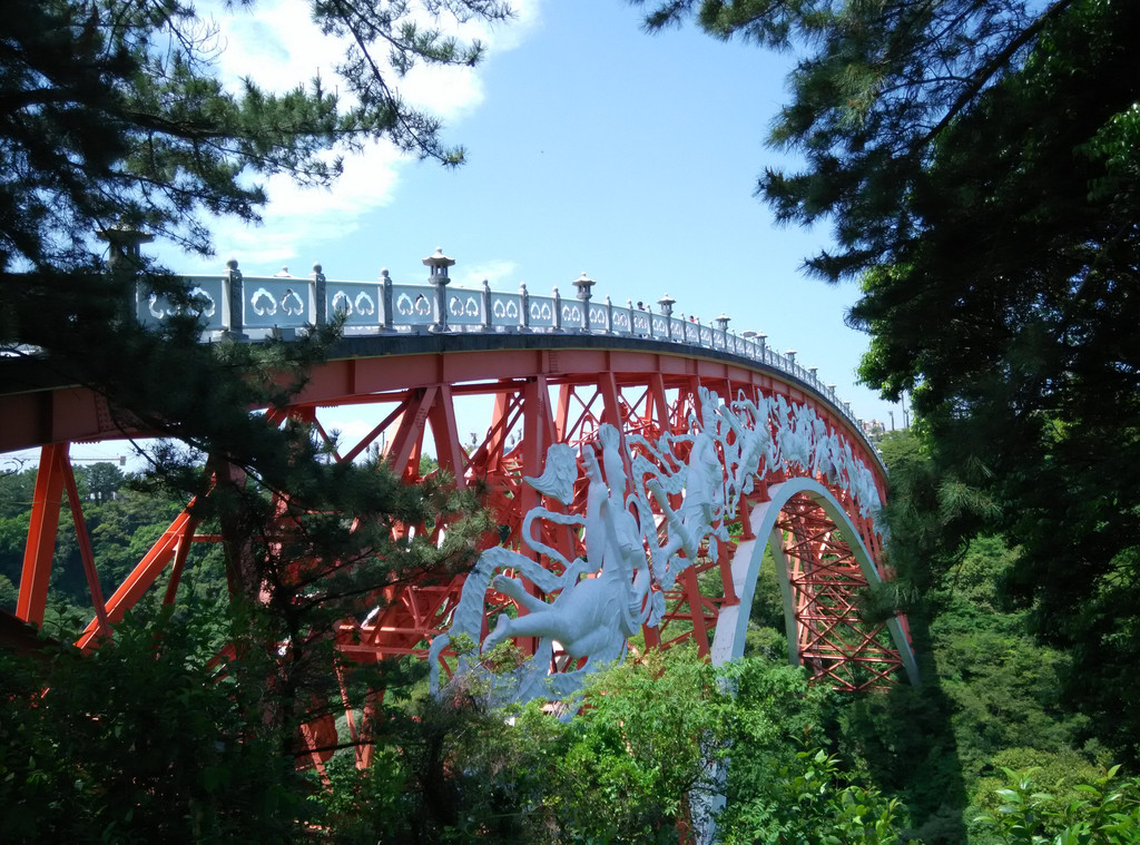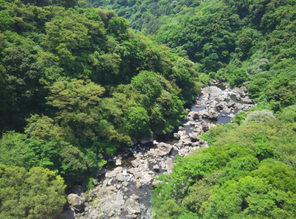 第二站天帝渊(?????)瀑布,是中文旅游区中非常出名的自然景观,字面意思是“天帝之渊”,因传说中侍候玉皇大帝的七仙女夜里下来此处洗浴闲游而得名。瀑布分为三段,第一段瀑布(高22m,水深21m)从东则岩石洞顶部流下,因山石阻隔又形成第二、第三段瀑布,并最终流入大海。在奔腾的瀑布之上是一座拱形的天桥——仙临桥,桥上有侍奉天帝的七位仙女的雕像。这里也是《大长今》中男女主角相爱与离别场面的取景地。