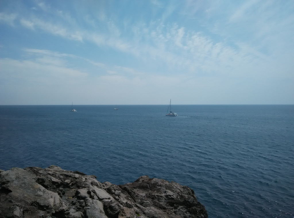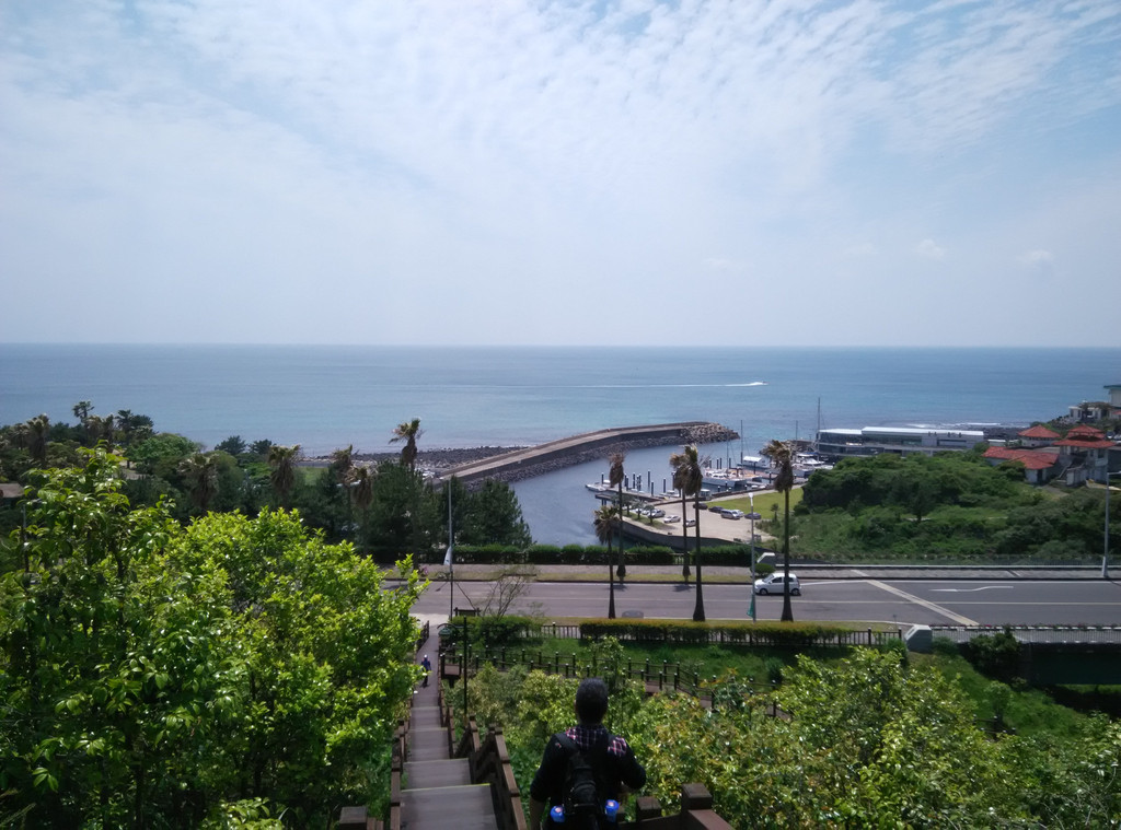 我们在绿丛环绕的山路上兜兜转转了好久,就在我再三怀疑我们迷路了的时候,视野突然开阔,咸咸的海风迎面扑来,蔚蓝的大海在不远处张开怀抱,果然跟着偶来小路就能看到最美的济州。