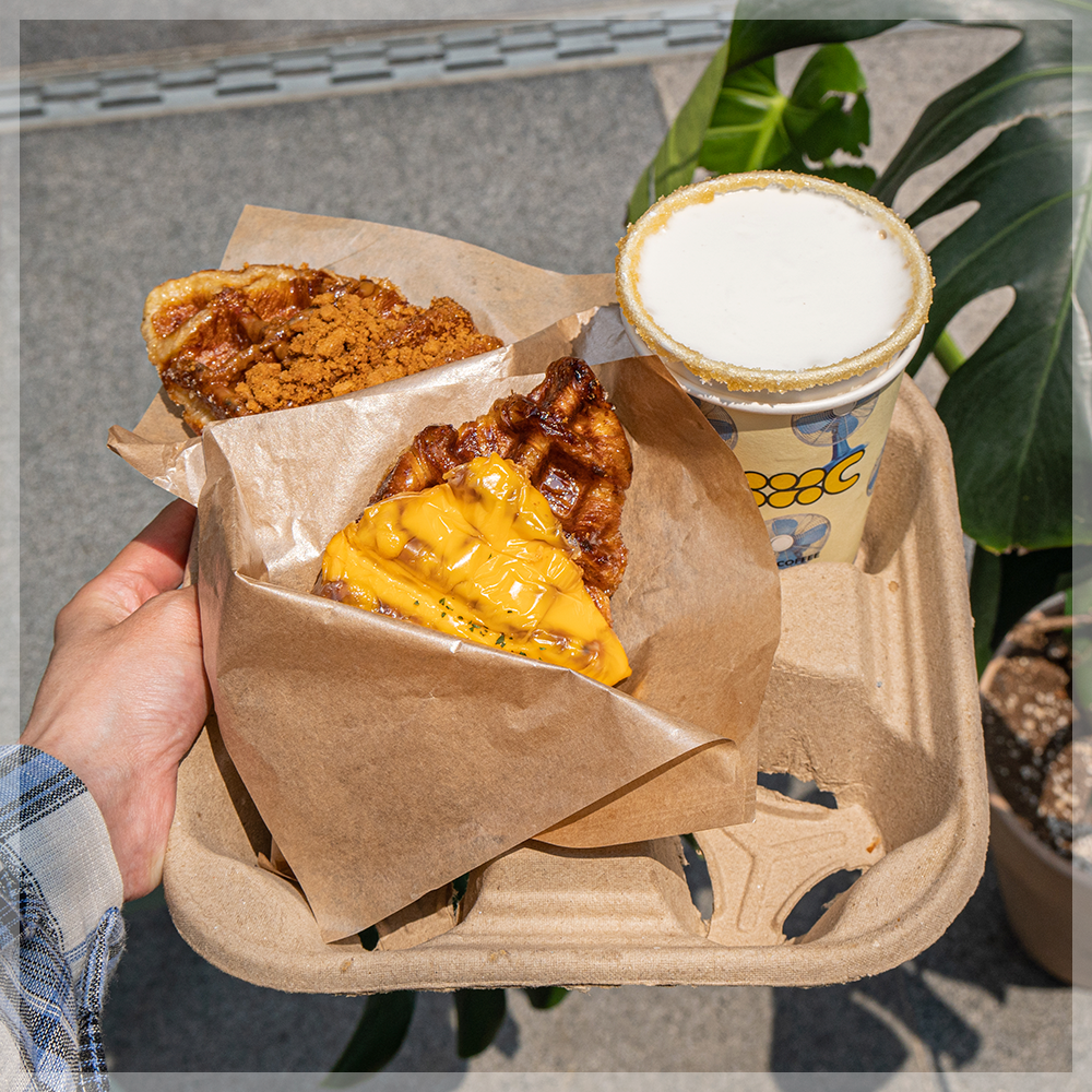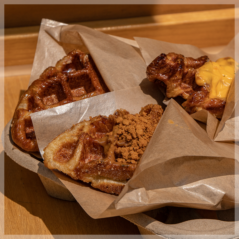 因为能同时尝到牛角包的香嫩筋道和华夫饼的酥脆口感,所以成为了男女老少都喜爱的大势甜品!