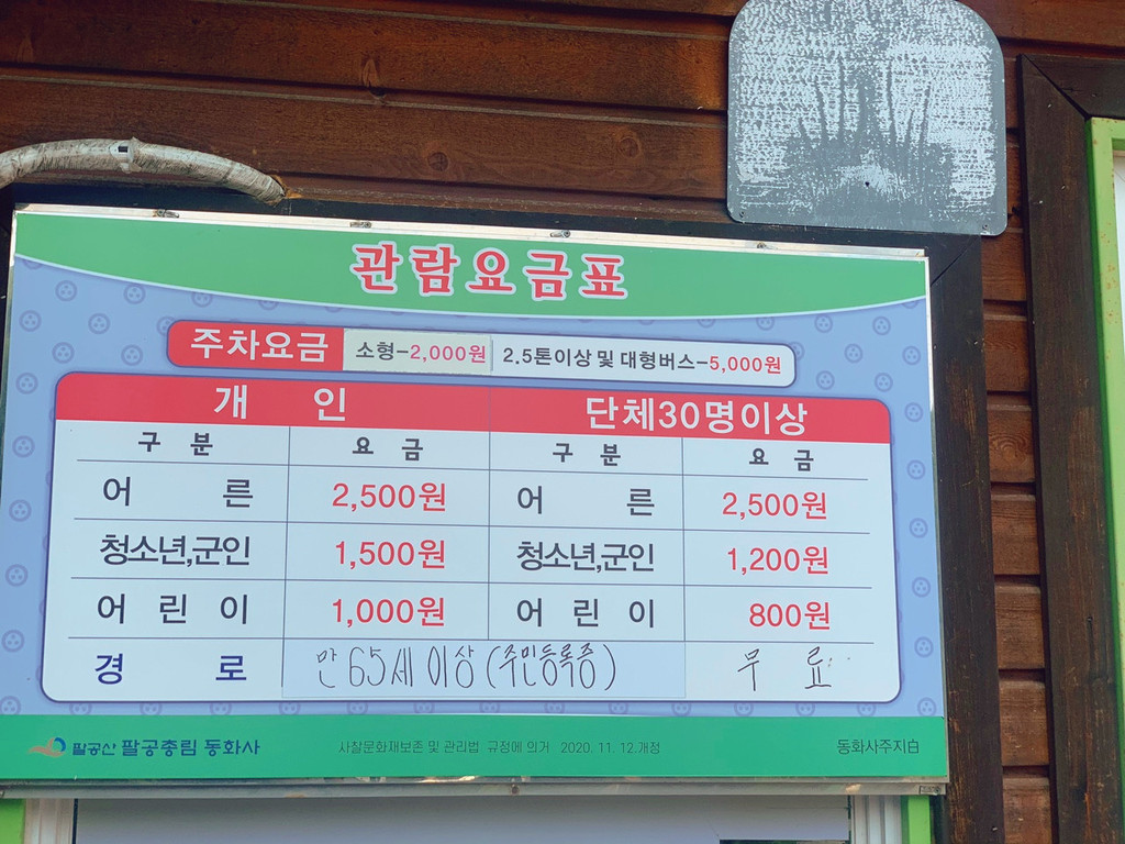 桐华寺的门票是2500韩币(约15元左右)。从正门进去之后,还要再走一段~