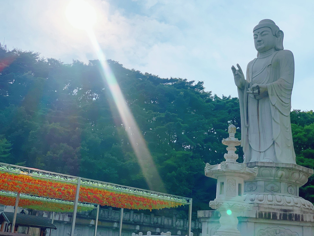 到桐华寺一定要去看的就是统一药师如来佛像~ 这尊高33米的佛像据说是为祈愿统一而造~