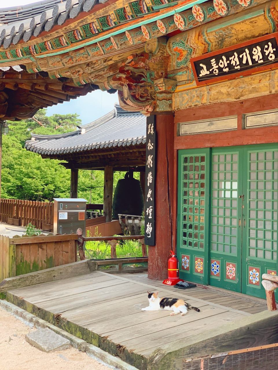 一般在寺庙里看到野猫也不觉得奇怪,但是这只... 要提一下~ 因为去年秋天到访的时候,它也在~ 看来是也算是这桐华寺的住客~ 而且还很好客~呵呵