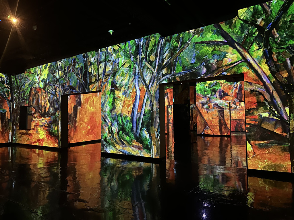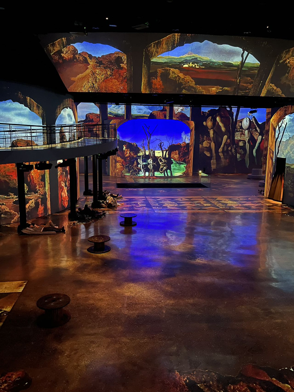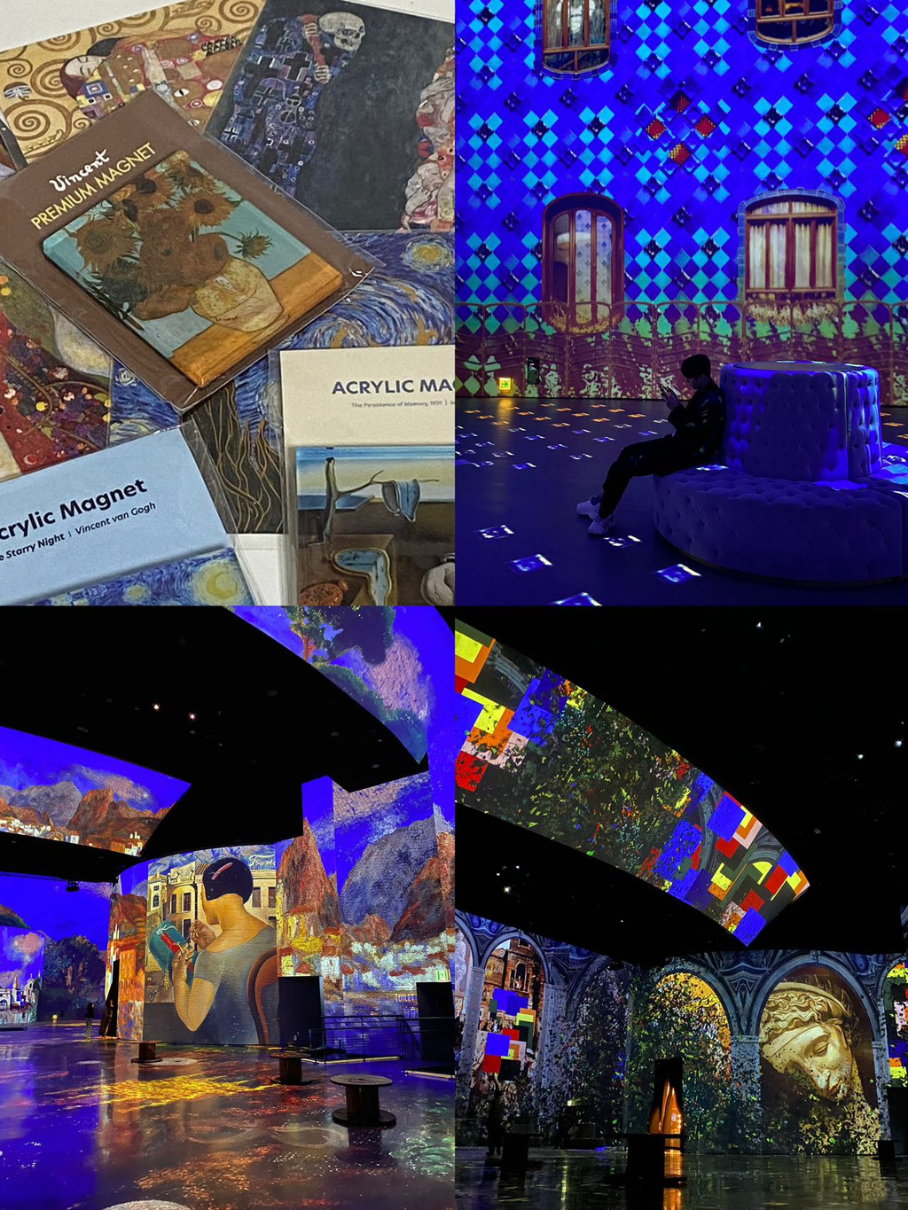 馆内的沉浸式艺术展会定期更换新的主题,目前馆内正在举办以西班牙超现实主义派画家达利的作品为主题的艺术展,达利梦幻离奇甚至略显荒诞的作画风格非常适合这种展览方式,在光影营造的空间内,参观者就好像来到了梦境,体验超现实的艺术世界。