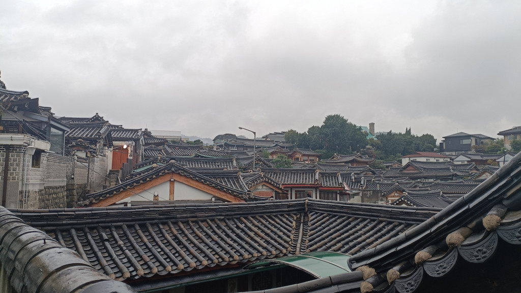 北村三景:嘉会洞11号一带 - 典型的韩屋屋顶层层叠叠,是北村的标志性画面。