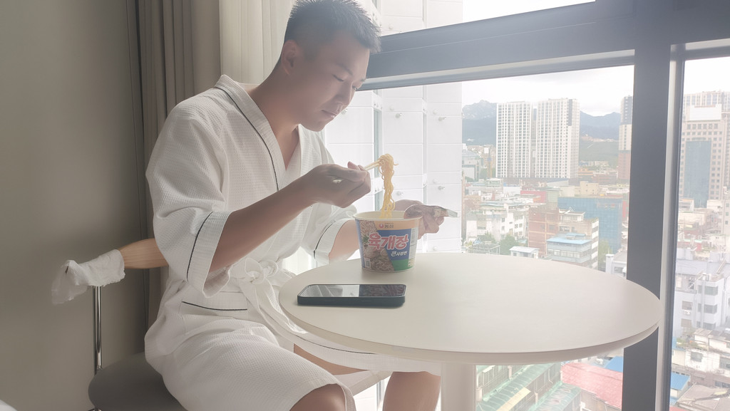 这次出行呢,还有点特种兵旅行的味道,因为飞机晚点将近一个小时,我们到韩国的时候。已经大概凌晨1点了吧。出关比较顺利,海关人员的过关要求基本都能理解。旅行社派人接机,深夜的首尔街道,也是灯火酒绿,干净整洁。到达旅馆休息的时候可能得到了凌晨3点。然后早上7点就起来。之前听人说韩国吃饭很贵,什么早餐都可以在便利店解决三明治。