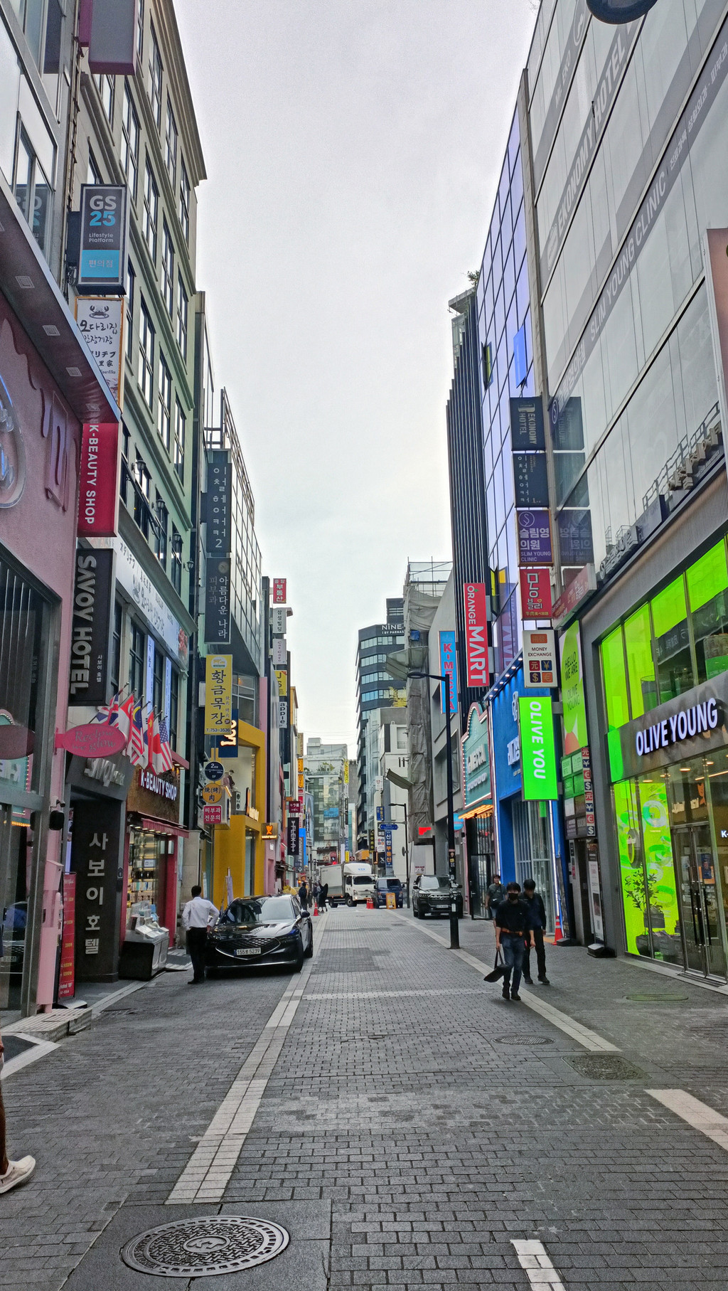 弘大步行街是韩国年轻人的聚集地(好像附近有几所大学),处处洋溢着自由、创意和活力。地铁2号线弘益大学站(홍대입구역)9号出口,从9号出口出来,你就已经置身于弘大的热闹中心了。主打平价时尚:韩国本土年轻设计师品牌、快时尚和潮流单品,价格亲民,款式前卫。我们先逛了一家店,名字好像是啥,忘了。我们俩各买了一件白色STCO的毛衣,手感和上身效果都不错,韩国STCO是专注于商务男装的时尚品牌,以高品质面料、剪裁和设计著称,主要面向职场男性群体。Z还买了一顶帽子,忘了什么牌子了,但我觉得不好看,他还感觉很美。我们逛了HM,碰到了几个东北人,说比国内的便宜50-100,Z买了一条韩版裤子,效果还不错。不过我们逛了阿迪、耐克等店,并没有发现比国内更便宜和好看的东西。规模也不比北京的旗舰店大。最后在OLIVE YOUNG里逛的时间不短,韩国的面膜、化妆品确实比国内便宜,而且看着质量还不错,我们俩买了不少面膜和面霜等,其实,如果是第一次去,还是要提前了解一下品牌和效果,韩文看不懂,需要老拿手机翻译,耽误时间。