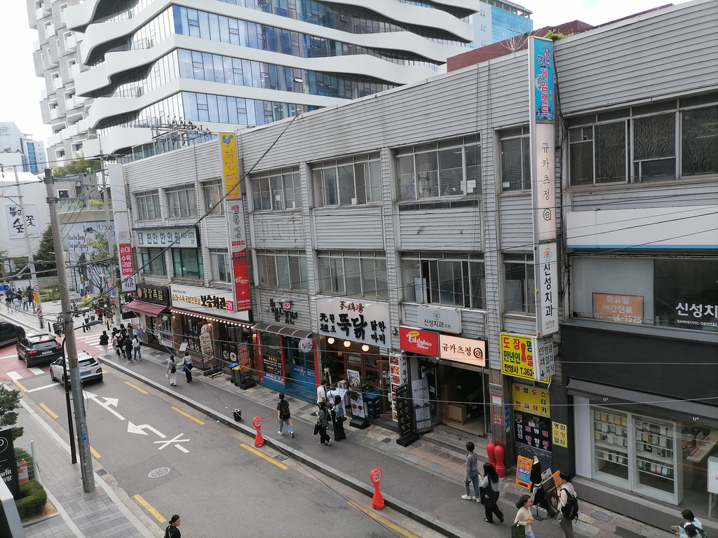 我们去的比较早,8点半左右,因为韩国的商店一般上午10点才开门,得11点以后才会陆续的热闹起来。因此,没有进什么商店,看了看街景而已,远远的眺望了南山首尔塔。因为时间关系及道路不熟悉,我们在明洞的几条街道逛了逛,然后去了狎鸥亭,圣水洞,弘大步行街,晚上去吃了韩国烤肉,溜达溜达一天的时间就过去了。