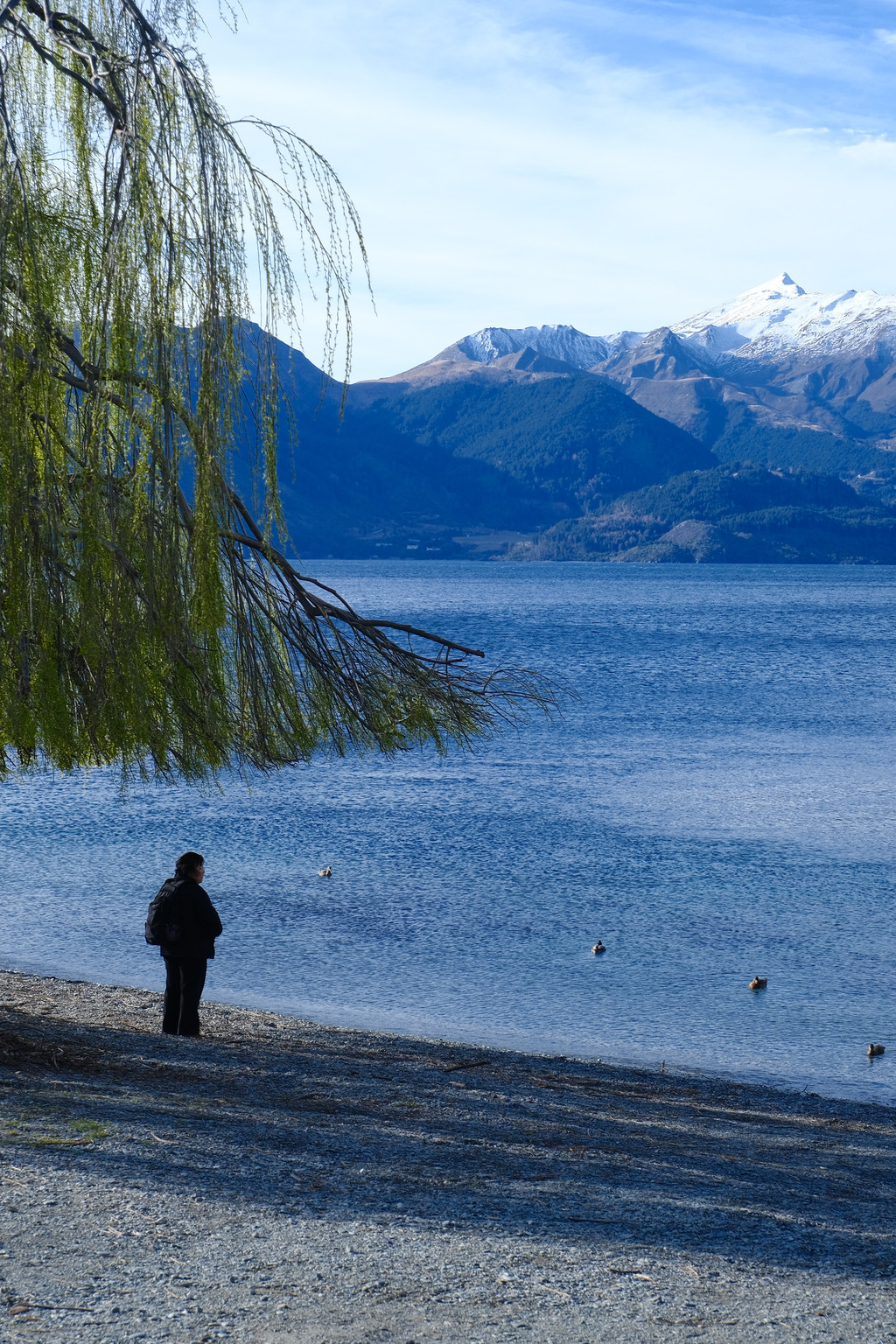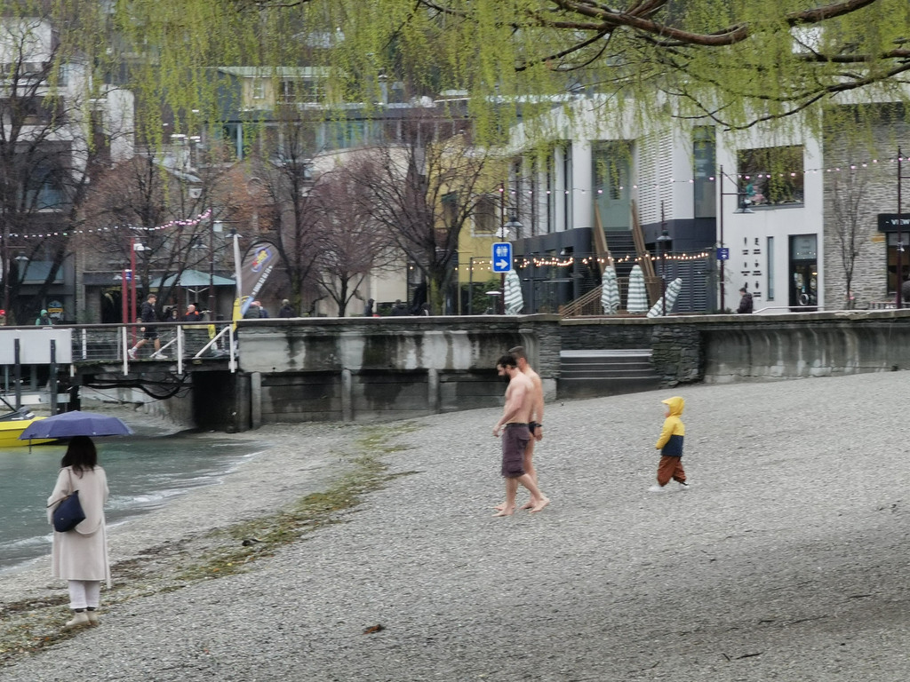 雨天的皇后镇有着和晴天完全不同的模样,今天虽然是周日,街道上却很冷清。瓦卡蒂普湖变成了深绿色,边上的雪山云雾缭绕,感觉有点像峡湾的味道。我们穿过皇后镇花园,昨天这里有很多运动的年轻人,特别热闹,今天就只有偶然出现的散步的老人,冬天的花园总是萧瑟的,但树枝上的嫩芽也预示着春天即将到来。