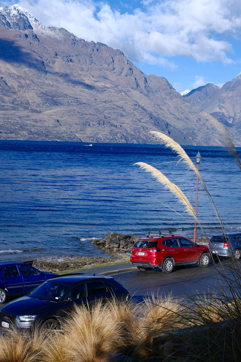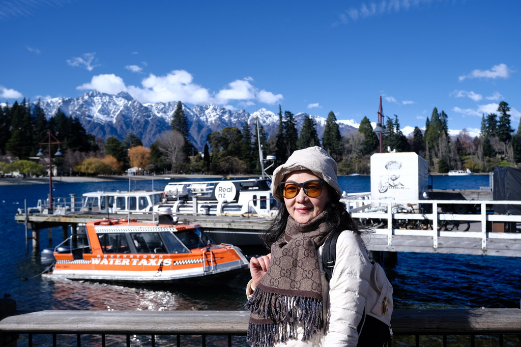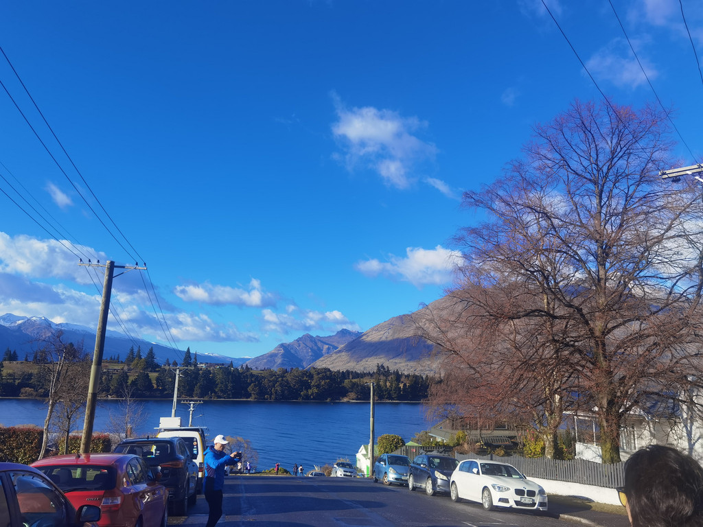 今天早上从皇后镇沐浴阳光的美景中醒来,推门出去,到处都是清新的空气,阳光很好,天空湛蓝。这个只有5万人口,却每年涌入500万游客的小镇,它的美是毋庸置疑的。现在是冬天,很多欧美游客来这里体验雪上项目和极限运动,所以也是小旺季,不过这些活动可不适合中老年人,我们还是走走逛逛比较好。早上出门走到瓦卡蒂普湖边,游客还很少,可以尽情欣赏美丽的湖景。